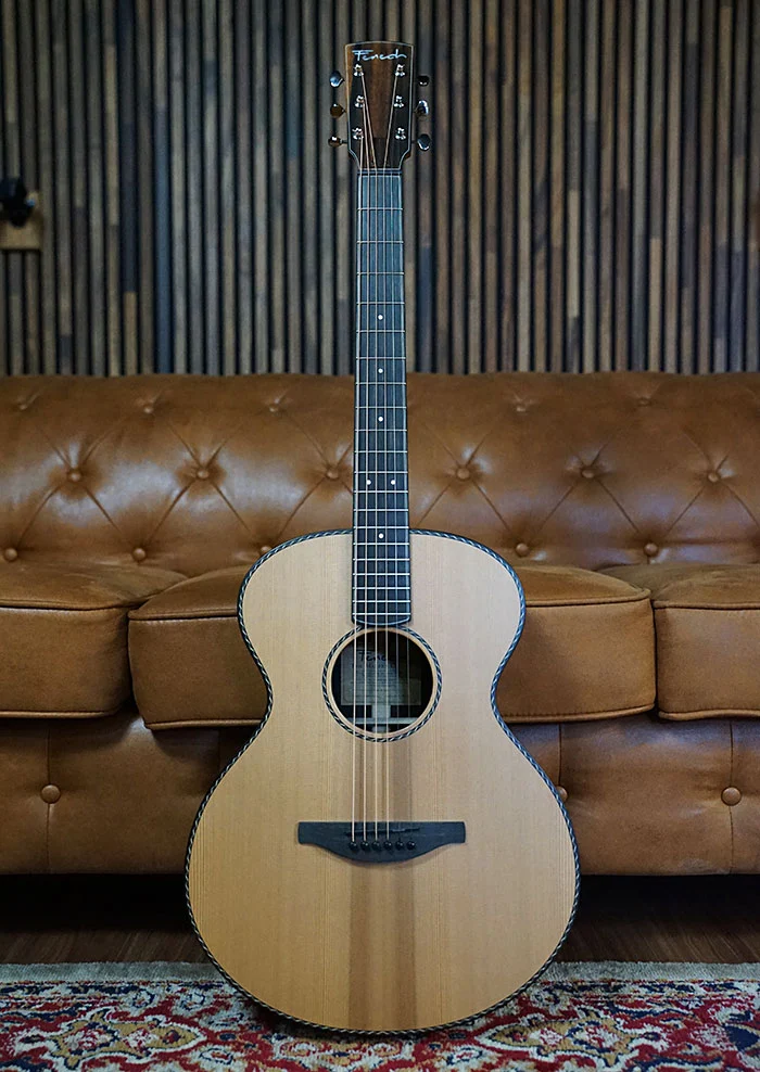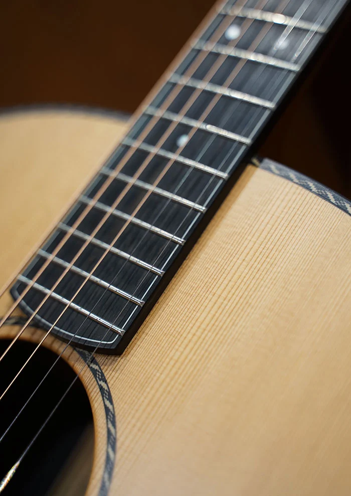 The first instrument of the Maker's Choice was conceived with fingerstyle playing in mind. Its Old Growth Red Cedar top, selected by Aaron Fenech many years ago, offers a warmth and openness rarely found in modern material. Individually optimised bracing allows the soundboard to respond freely, producing a rich and complex tonal character.