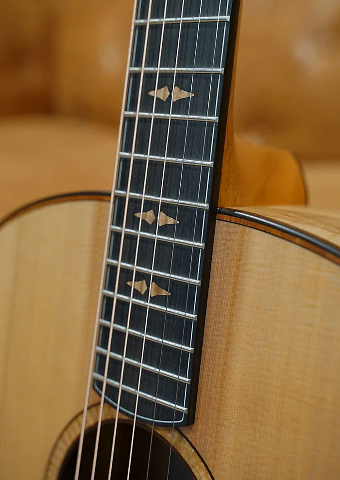 In shaping this build, the Grand Auditorium body was selected for its ability to preserve nuance while allowing the instrument to breathe. It enhances the Cedar’s sensitivity and quick response, while the density and character of Mountain Ash bring structure, balance, and a gentle low-end foundation.